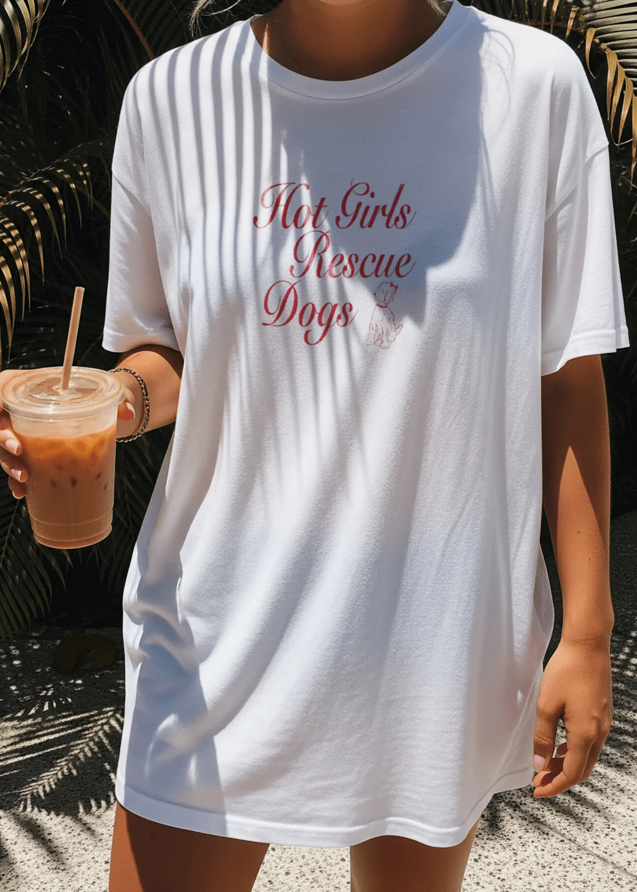 Our unisex premium tee features the Hot Girls Rescue Dogs Graphic on the center chest