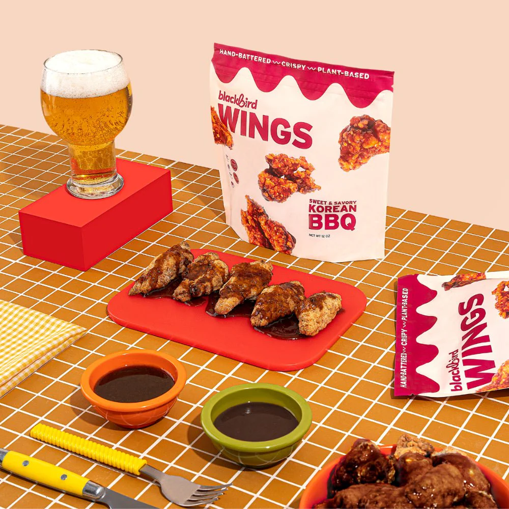 Ingredients: Wings (Enriched Flour [Unbleached Wheat Flour, Malted Barley Flour, Niacin, Reduced Iron, Thiamin Mononitrate, Riboflavin, Folic Acid], Water, Shoyu (Whole Soybeans, Whole Wheat, Salt), Citric Acid, Panko Bread Crumbs [Wheat Flour, Sugar, Yeast, Salt], Corn Meal, Potato Starch, Canola Oil), Korean BBQ Sauce (Soy Sauce [Water, Soybeans, Salt], Sugar, Water, White Distilled Vinegar, Apple Juice Concentrate, Granulated Garlic, Corn Starch, Granulated Onion, Black Pepper, Ground Ginger). Contains: Wheat, Soy