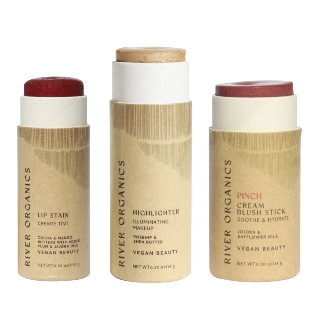 Discover the perfect trio of clean beauty essentials with our Lip + Highlighter + Blush Set. Each set is fully customizable, allowing you to choose one lip product, one highlighter or bronzer, and one blush stick to match your style. Crafted with nourishing plant oils and butters, these multi-use sticks deliver long-lasting hydration, natural color, while caring for your skin. Packaged in our signature plastic-free tubes, this set makes an ideal everyday beauty routine, or a thoughtful sustainable gift. *A Gift box can be added after the items are added to cart.